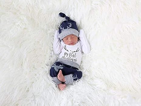 Geagodelia Babykleidung Set Baby Jungen Weihnachten Kleidung Weihnachtsoutfit Langarm Body Strampler Hose Neugeborene Babyset My First Christmas Weiss Dunkelblau My 1st Christmas 0 3 Monate Amazon De Fashion